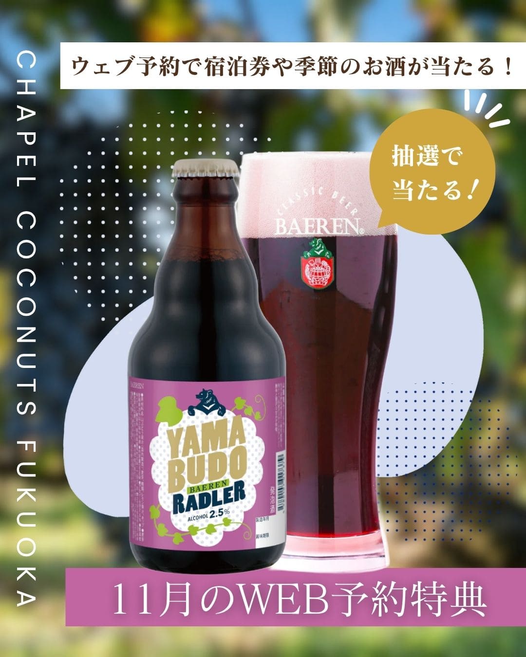 チャペルココナッツ福岡ではご宿泊予約でご来店いただいたお客様限定でガラポン特典をご用意しております。